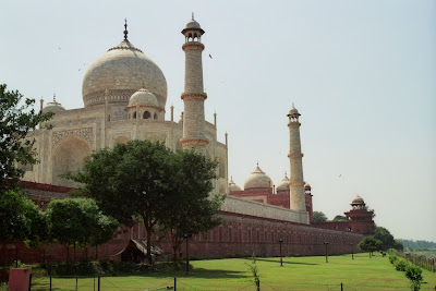 The Taj Mahal, in Agra, India, is the spectacular mausoleum built by Muslim Mughal Emperor Shah Jahan to honor the memory of his beloved late wife, Mumtaz Mahal.